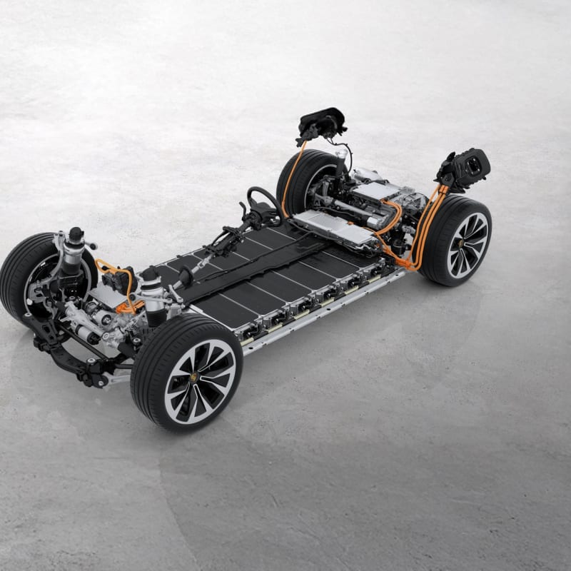 113-kWh baterija kot del strukture zniža težišče za 83 mm in Cayennu Electricu zagotavlja stabilnost športne limuzine.
