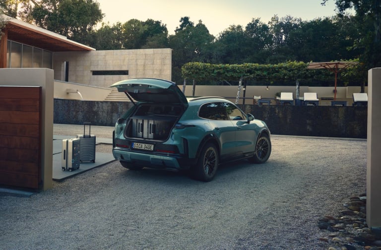 Glavni prtljažni prostor zadaj v osnovi meri razkošnih 781 litrov. Nakladalni rob je širok in nizek, prtljažna polica pa se, ko je ne potrebujete, pametno pospravi pod dvojno dno. Ko pa želite prostor za prevoz večjih predmetov, se Cayenne Electric izkaže s svojo prilagodljivostjo. Naslonjala zadnjih sedežev so deljiva v razmerju 40:20:40 in se s pritiskom na gumb v prtljažniku zložijo električno. Takrat nastane skoraj ravna površina, skupna prostornina pa pri Cayennu Electric naraste na impresivnih 1.588 litrov.