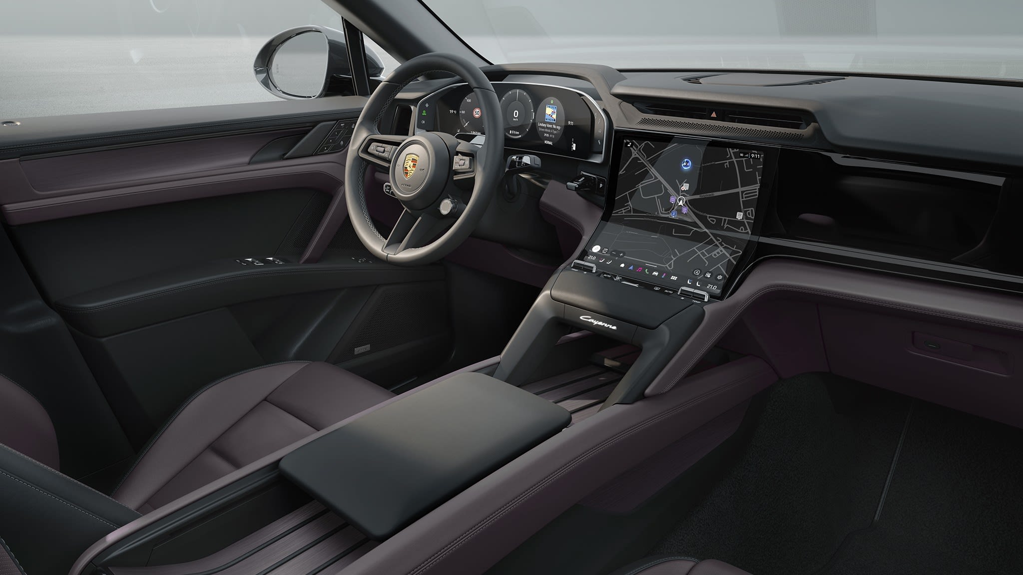 Uporabnost Cayenna Electric se nadaljuje v potniški kabini. Nova sredinska konzola, ki je zaradi prestavitve menjalne ročice na armaturo ter pomika upravljalnih elementov klimatske naprave navzgor sedaj bolj izčiščena, ponuja kar 16 litrov odlagalnih površin. Vključuje hlajen predal za pametni telefon z indukcijskim polnjenjem (z močjo do 25 W), ki telefon med hitrim polnjenjem aktivno hladi, da prepreči pregrevanje.