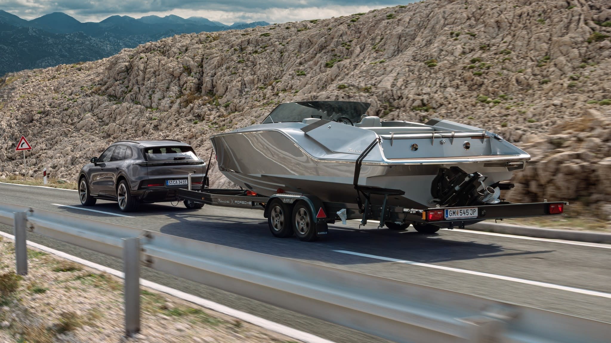 Pri zasnovi novega SUV-športnika so inženirji razvoj usmerili v zagotavljanje vrhunskih vlečnih zmogljivosti. Cayenne Electric v kombinaciji s paketom Offroad omogoča vleko zaviranega priklopnega vozila z maso do 3.500 kg. To je vrednost, ki postavlja nova merila v segmentu električnih vozil in je povsem primerljiva s predhodniki z motorji na notranje izgorevanje. Opcijska vlečna kljuka je električno zložljiva in se s pritiskom na gumb elegantno skrije pod zadnji odbijač, ko je ne potrebujete, s čimer ohranja čisto linijo vozila.